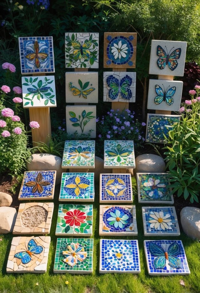 You can create mosaic plaques with your name or a special message. These add a personal touch to your garden. Use colorful tiles or glass pieces to make them bright and eye-catching.