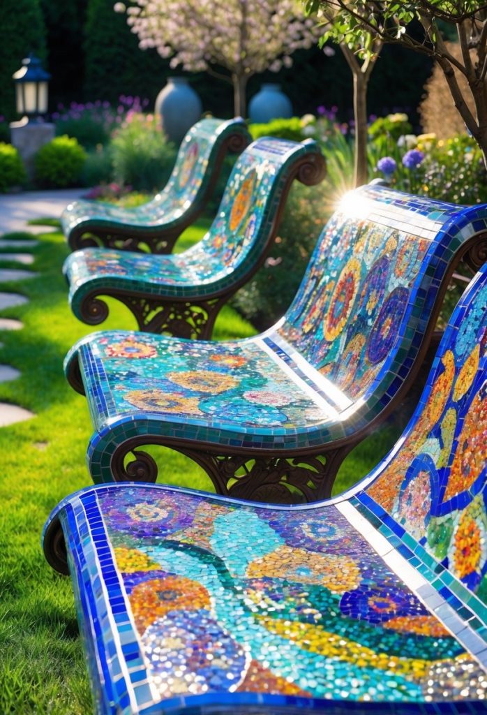 Sitting on it feels relaxing, and the bright tiles catch the light, making the bench a lovely focal point. It’s a great way to make your garden more inviting.