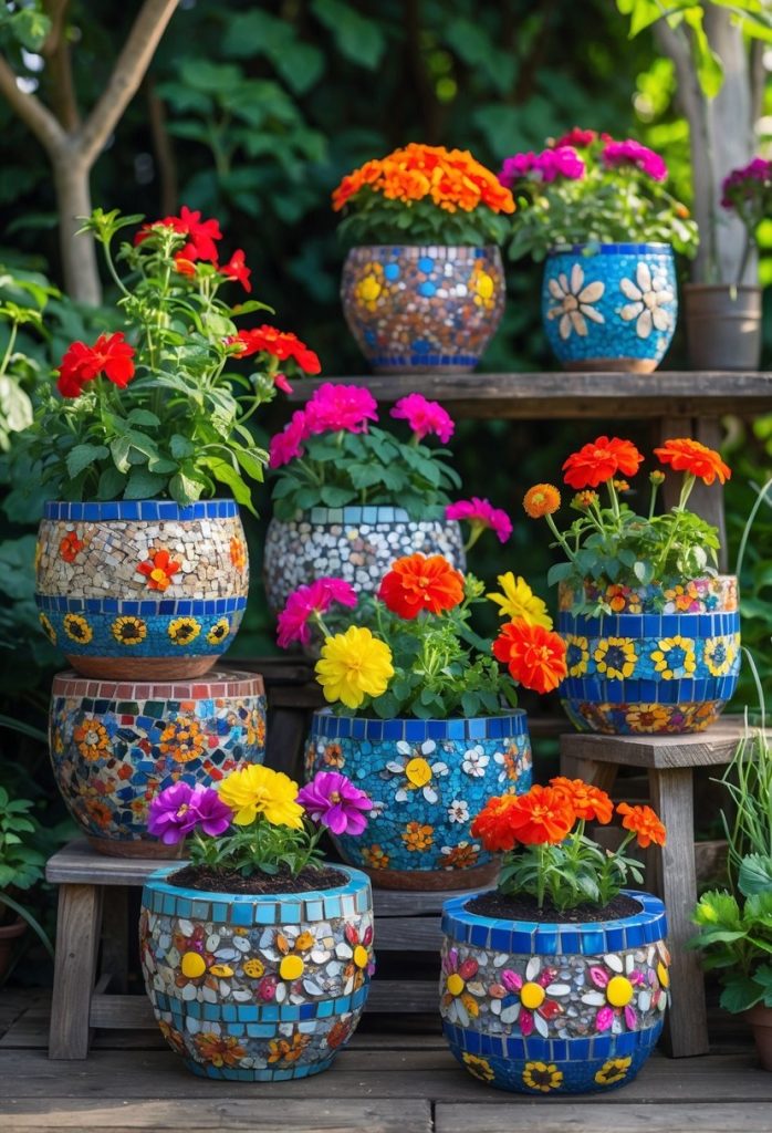 These mosaics are easy to make and give old planters new life. Your garden will feel more special with this simple art.