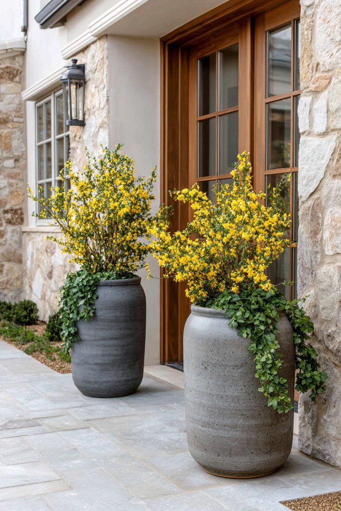 You can choose stone or concrete urns if you want containers that last through winter. They are strong and won’t easily tip over in wind or bad weather.