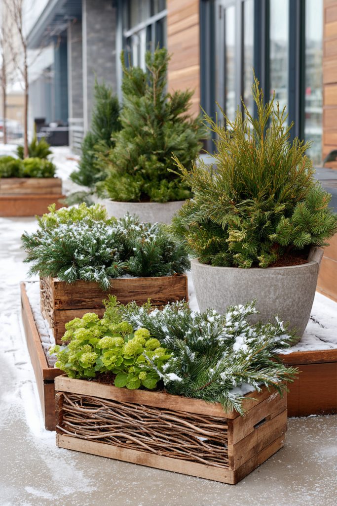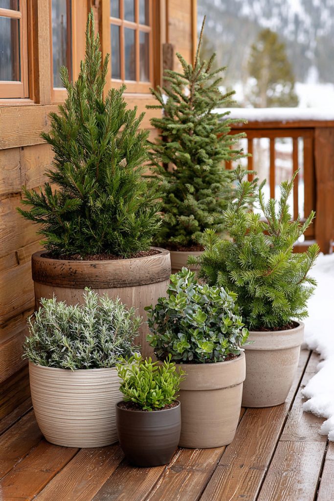 Dwarf conifers add steady shape and color to your winter containers. They grow slowly, so they stay neat and take up little space.