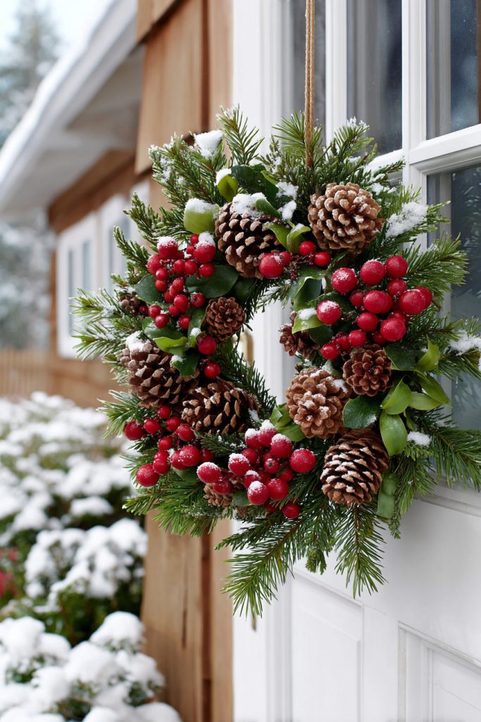 - 24. Snow-Covered Pinecone and Cranberry Wreath