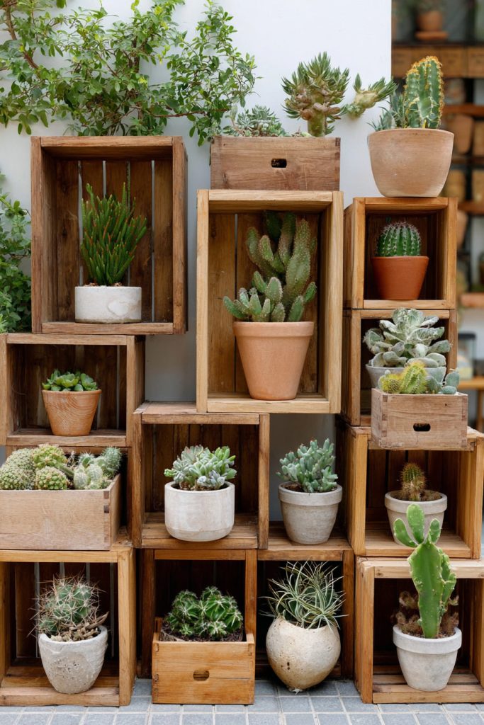 You can use stacked cube shelves to show off different cacti in a neat way. Each cube acts like a small room for one or more plants.