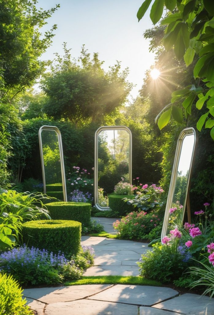 1. Install large reflective garden mirrors to amplify sunlight and create depth