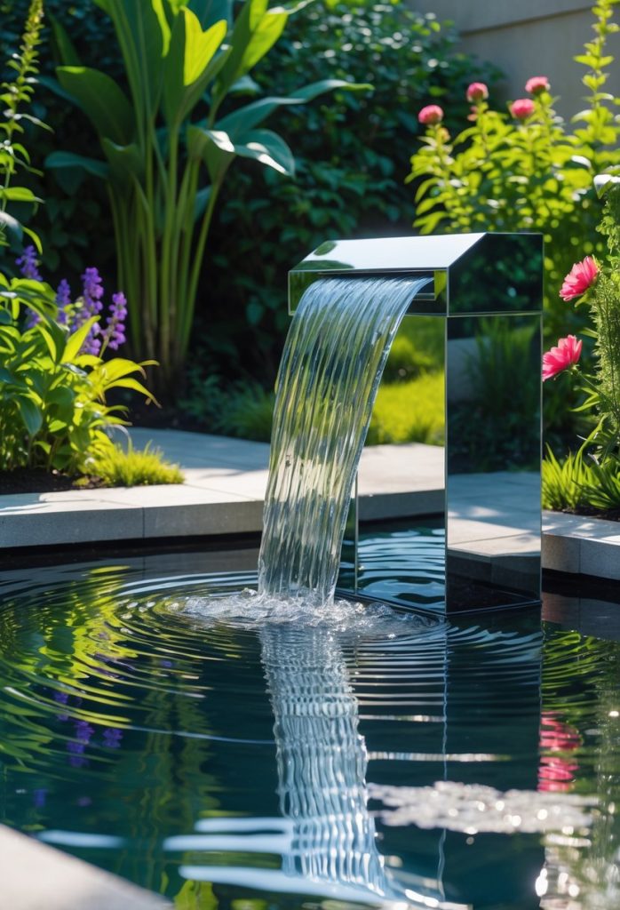 5. Add a water feature with a mirrored base to reflect light and cool the area