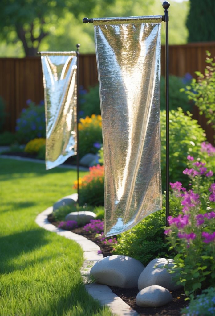 - 9. Use reflective garden flags or banners with metallic threads