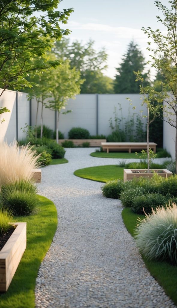 Using light-colored gravel makes small spaces feel brighter and more open. Plus, it fits well with natural elements like stones and wood.
