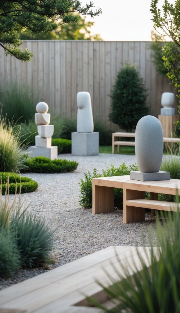 You can give your garden personality by adding simple statues or art pieces. Look for items made from natural materials like wood or stone.