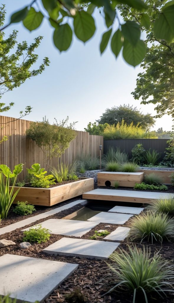 You can create a calm garden by using clean lines and simple shapes. This keeps your space feeling open and peaceful.