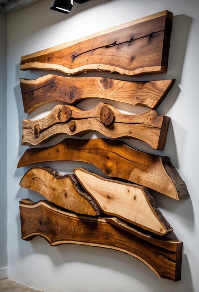 You can add a warm, natural feel to your space with natural edge wood slab art. These pieces keep the wood’s original shape and texture, making each one unique.