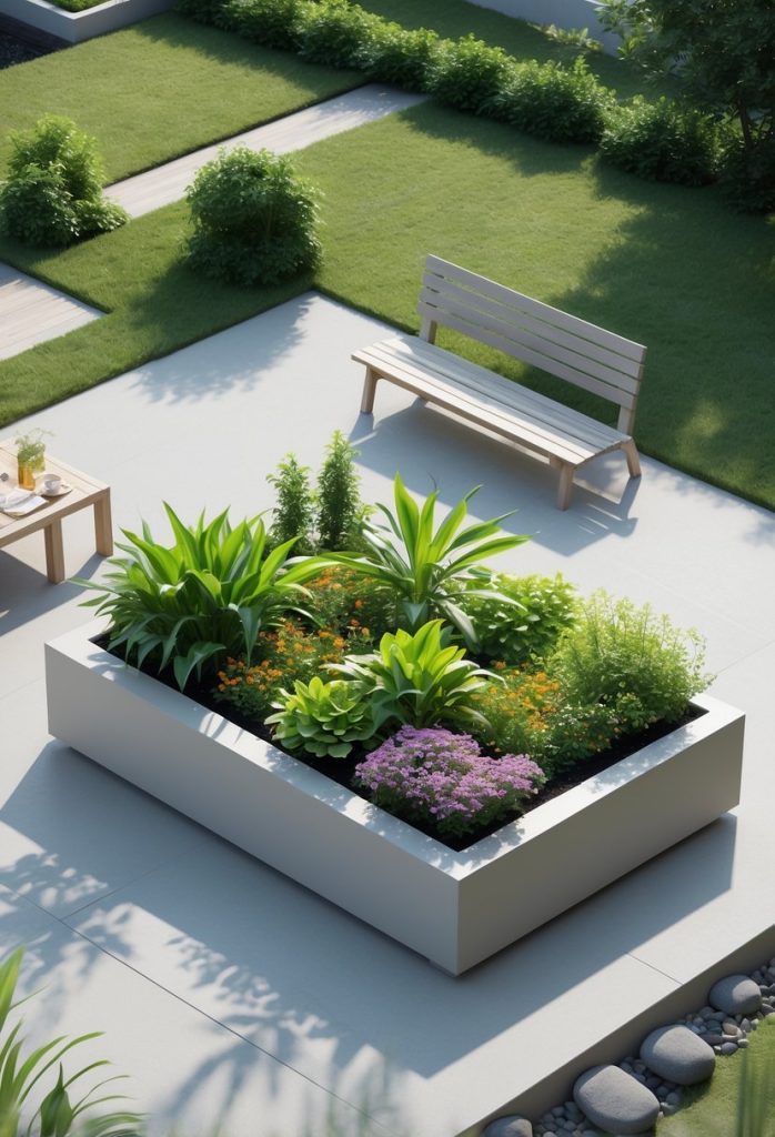 Plant tall flowers or small shrubs in it to add height and interest. This simple idea helps break up flat areas easily.