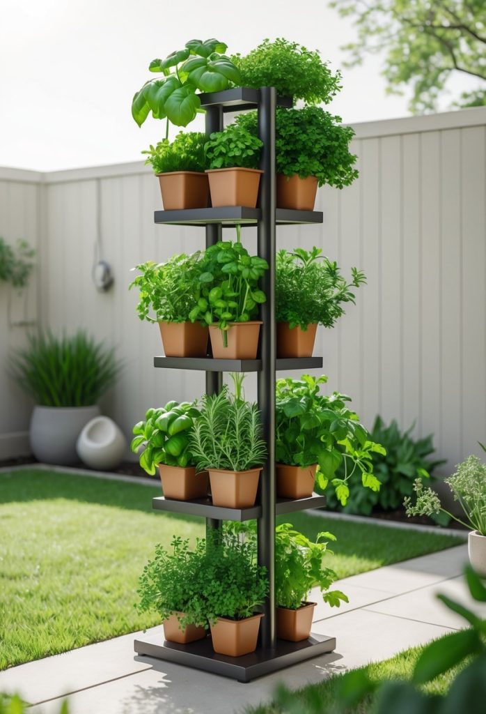 You can grow many herbs in a small space with a vertical herb garden tower. It stands straight and holds several plants in stacked containers. This saves space and keeps fresh herbs close for cooking. You can buy one or build your own with simple materials.