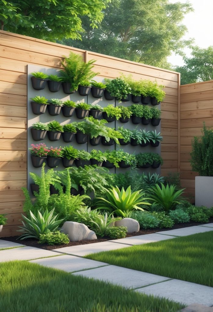 You can use your fence to grow plants vertically, saving space in your backyard. Attach planters or use climbing plants to turn the wall into a green, lively area. This adds color and life without taking up ground space. It’s simple and works well even in small yards.