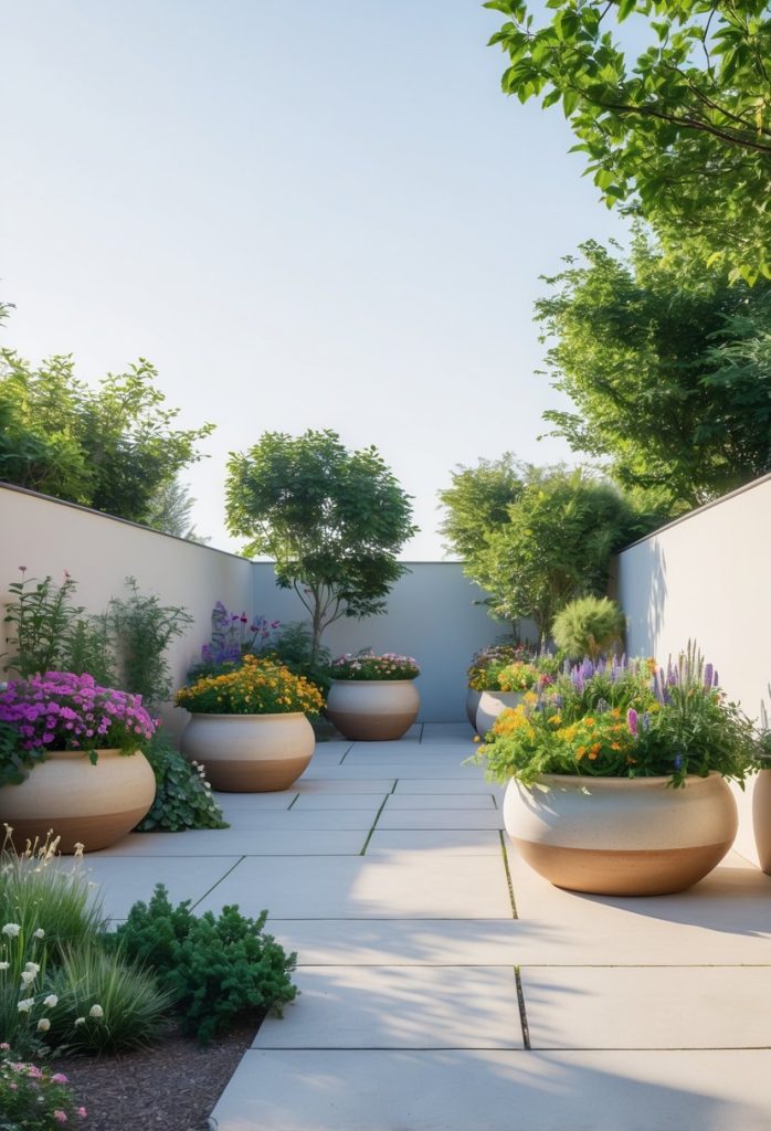Arrange different shapes and colors to make the space more interesting. It’s a simple way to keep your yard looking nice without much effort.