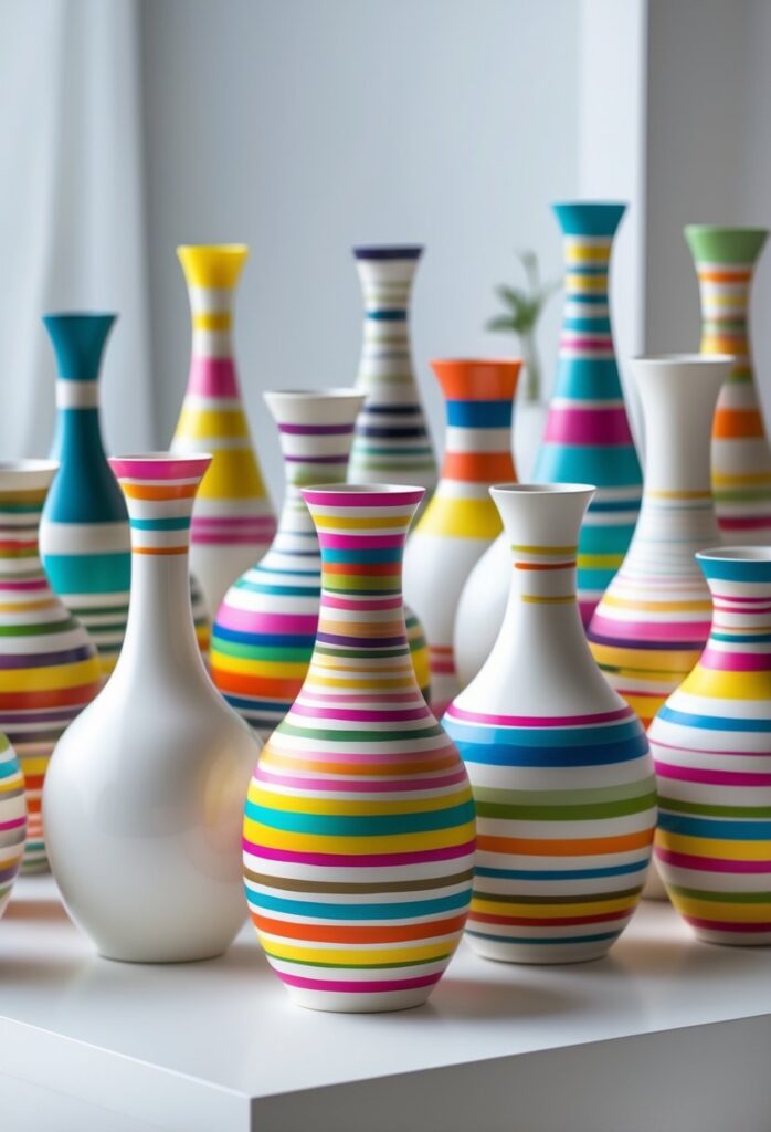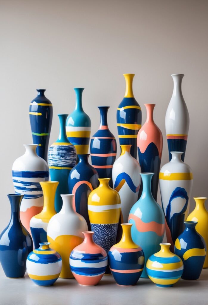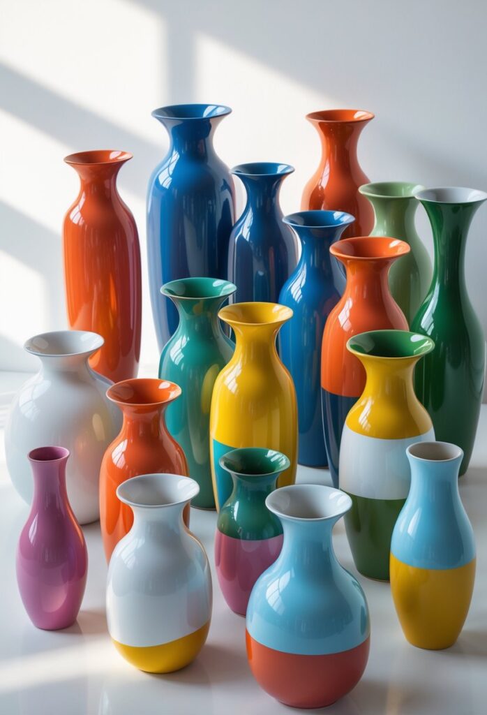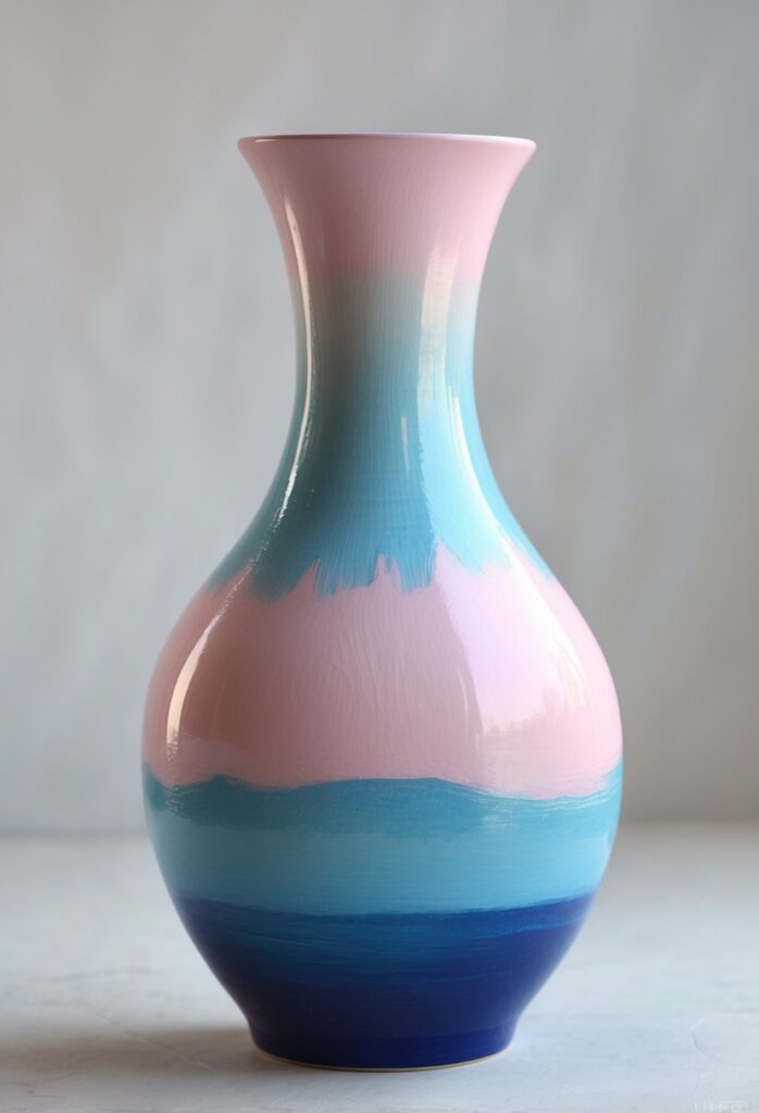 You can make your vase stand out with glossy color blocking. Pick two or three bold colors that look good together.