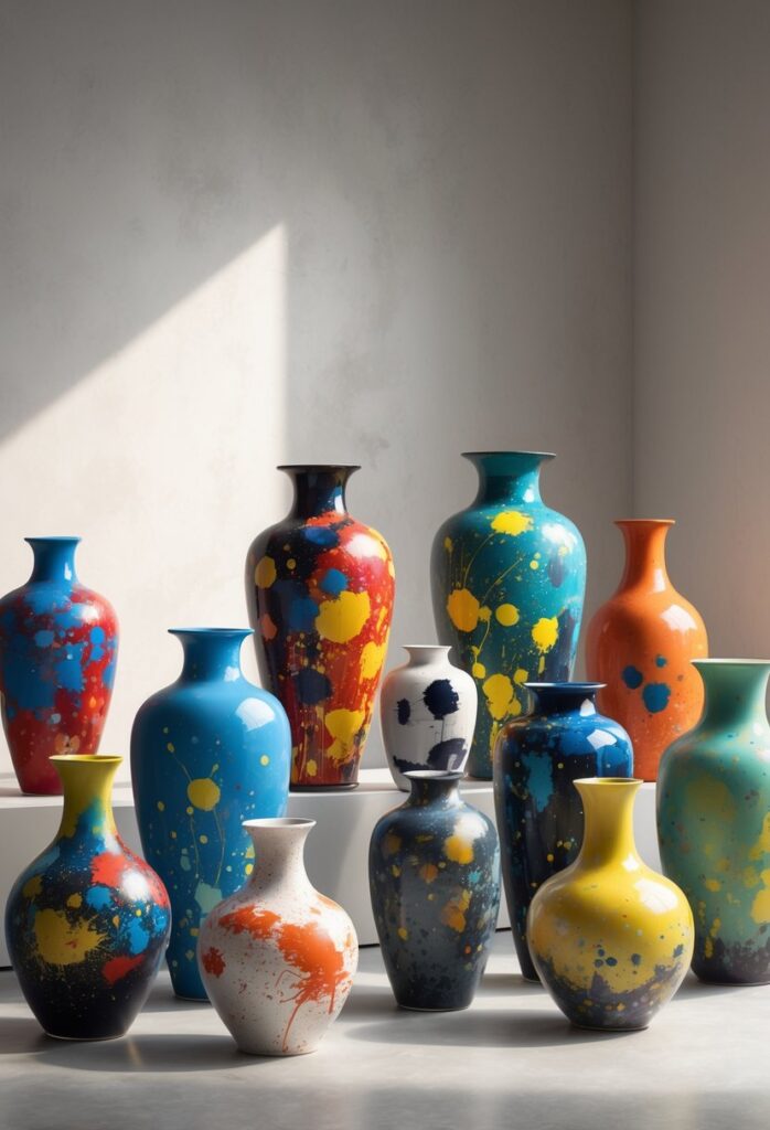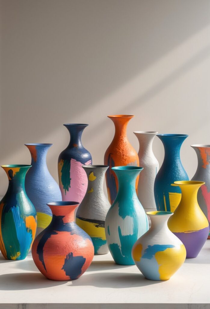 You can make your vase stand out with bold brushstroke abstract art. Use bright, thick strokes to add energy and color. This style lets you express your creativity freely without needing perfect shapes.