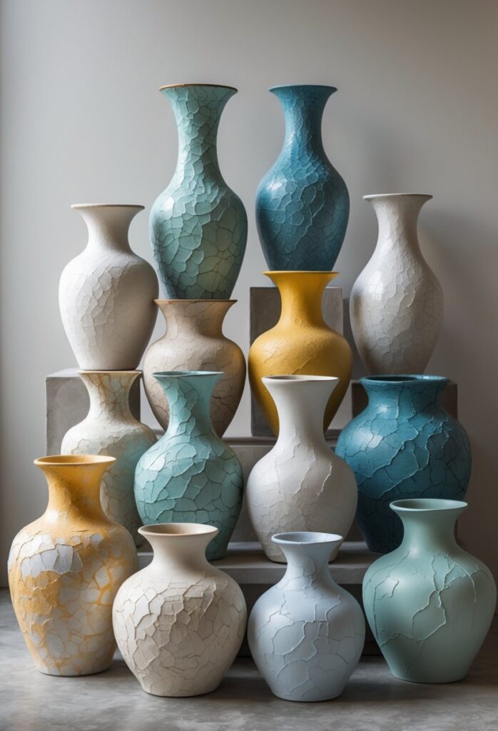 You can create a cool crackle finish that looks like real ceramic without the cost. Start by painting your vase with a base color and let it dry completely.