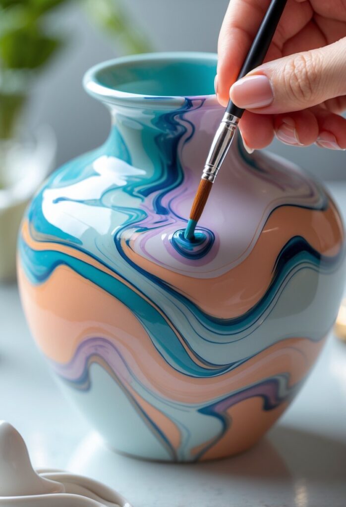 Try mixing colors directly on the vase for a lively effect. Each brushstroke becomes part of your unique design, giving your vase personality and charm.