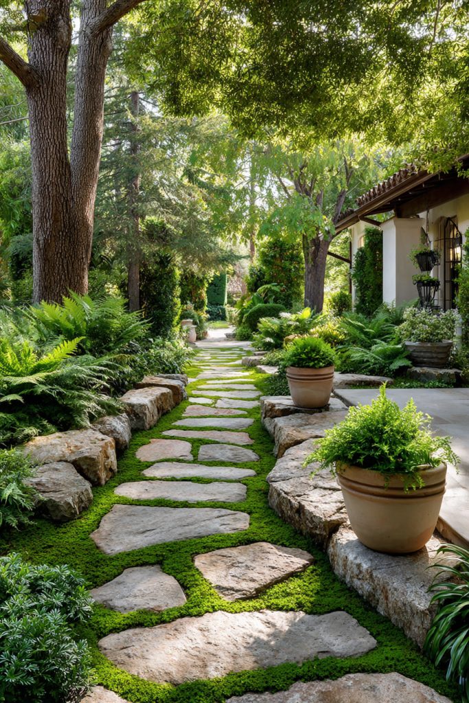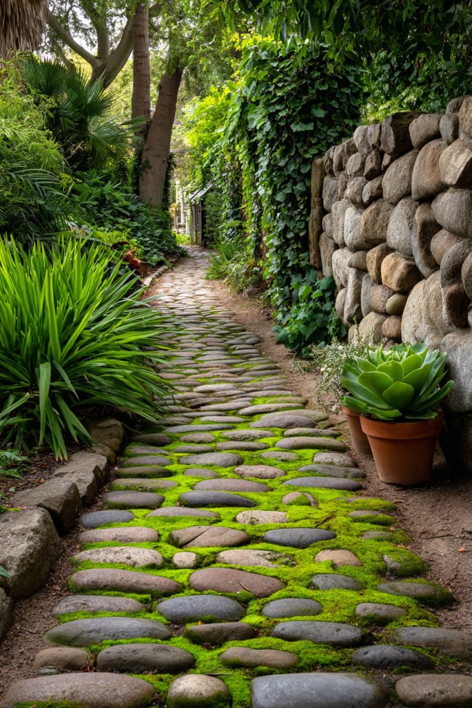 This style works well in shady, damp areas where moss thrives. It also helps your path look old and timeless without much effort.