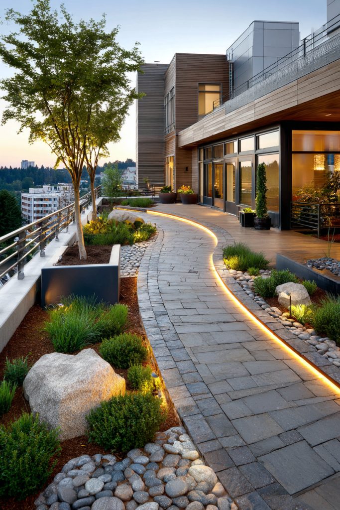 You can add a sleek look to your walkway by installing built-in LED lighting strips along the edges. These lights provide soft, even illumination that helps guide your steps at night.