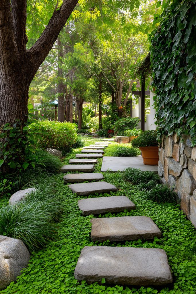 You can create a beautiful path by placing ground cover plants between your stepping stones. These plants are low-growing and can handle light foot traffic.