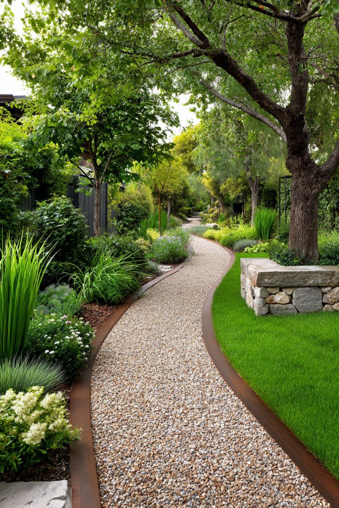 Metal edging is slim and modern, giving your path a clean look. It’s also durable and easy to install. This option works well if you want a simple but tidy design.