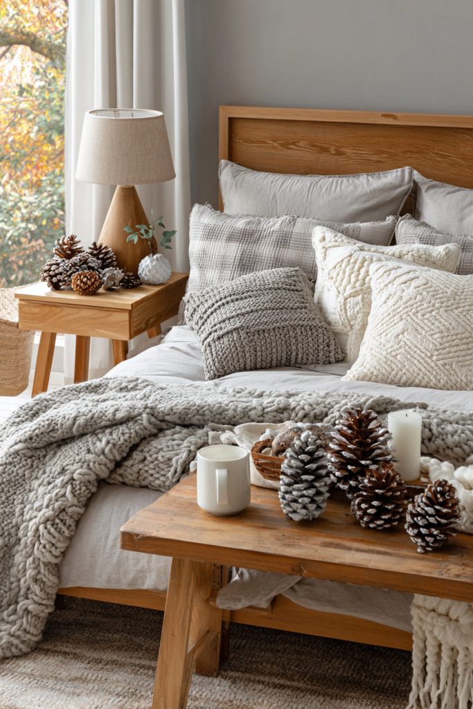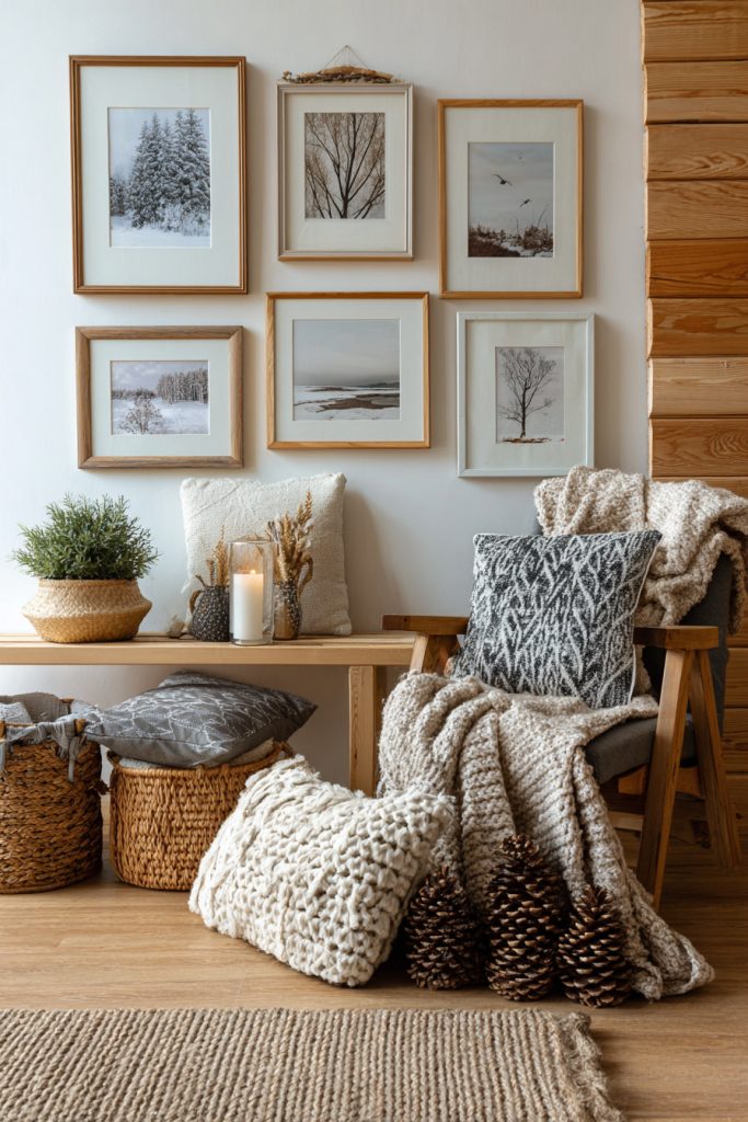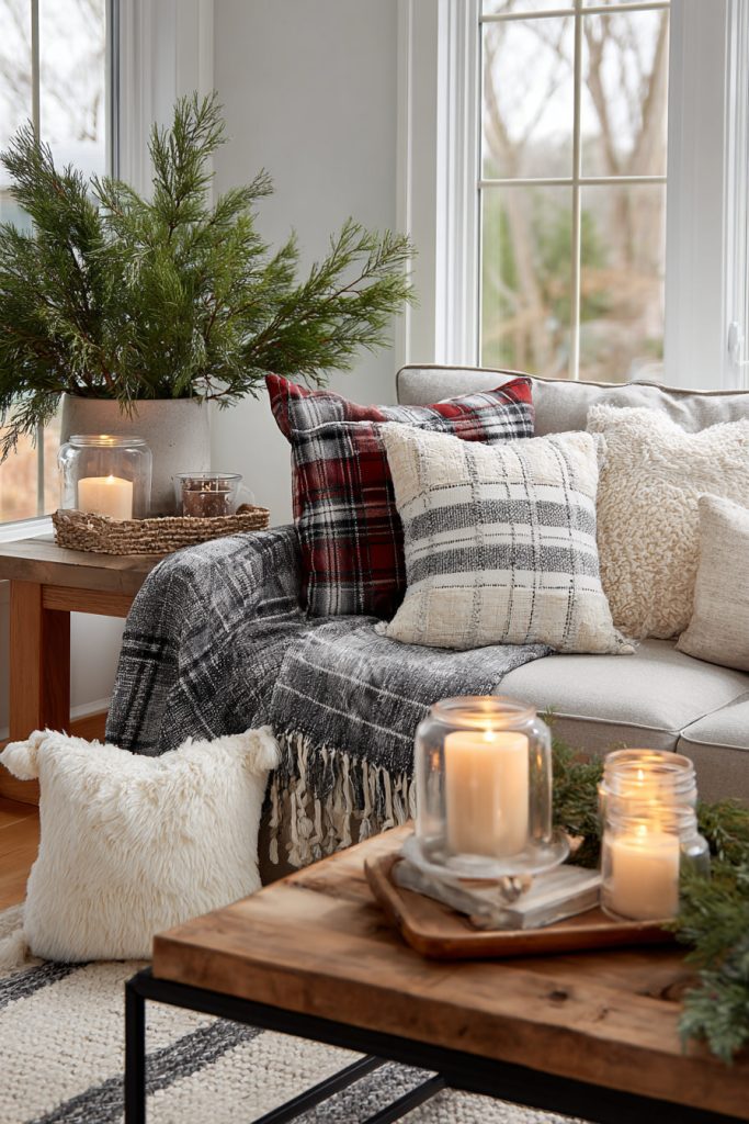 Mix in different textures like wool or faux fur to make your space even more inviting. This simple choice helps your home feel calm and warm all winter long.