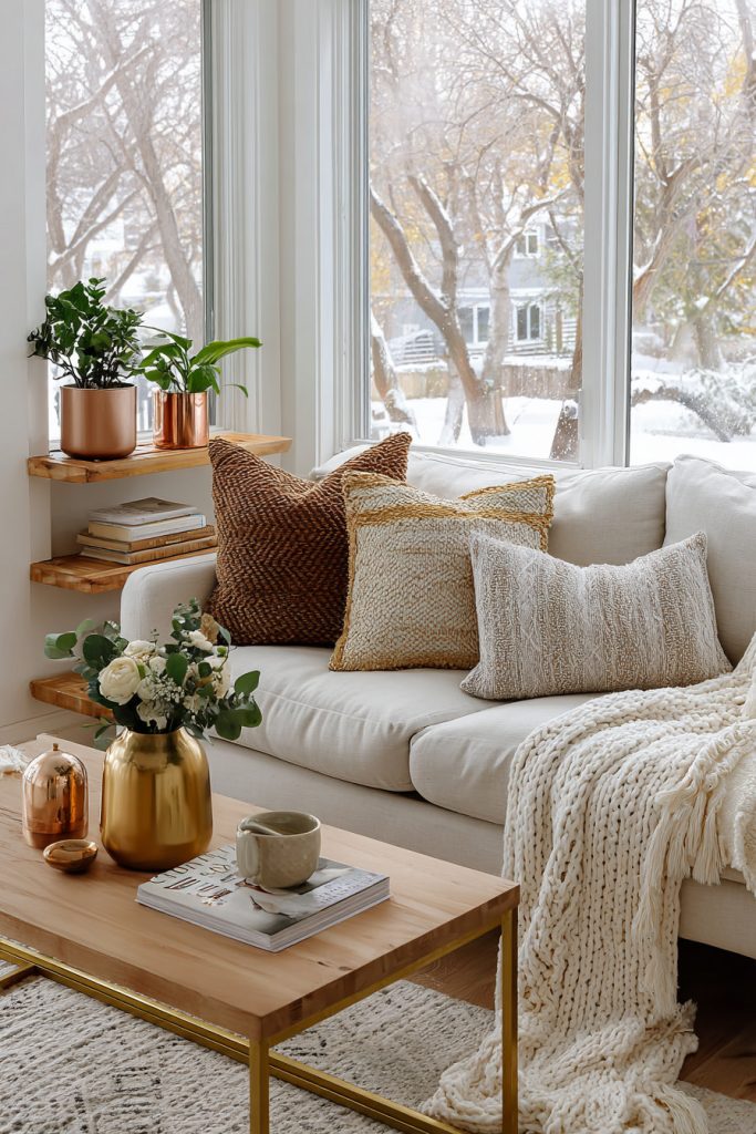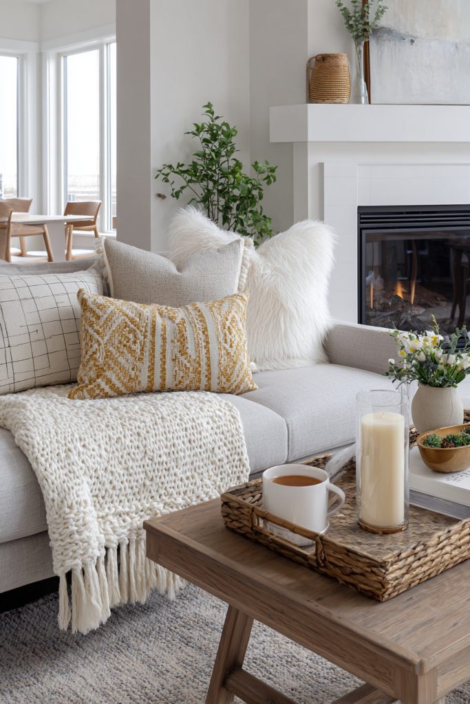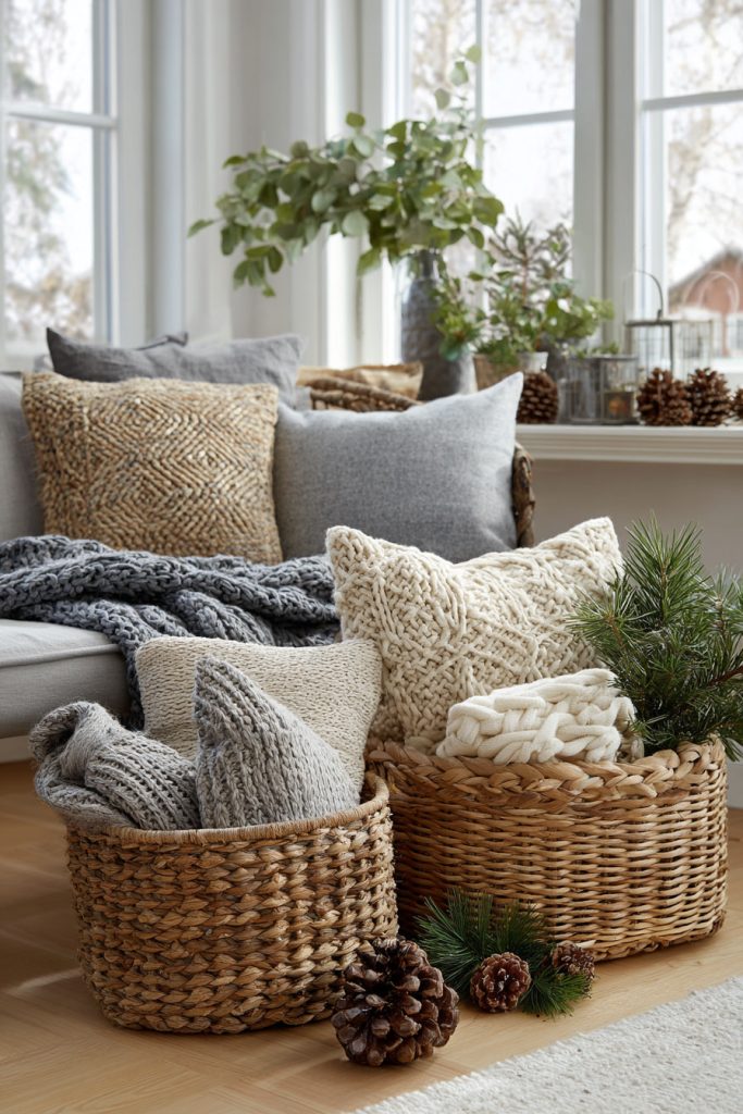 Choose blankets in colors that match your room to create a cozy look. This simple touch makes your living space feel more inviting all winter long.