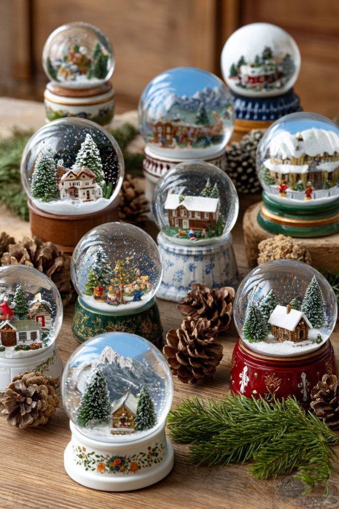 You can add a cozy, nostalgic touch to your space with vintage-style snow globes. They bring a gentle winter charm without needing much effort.