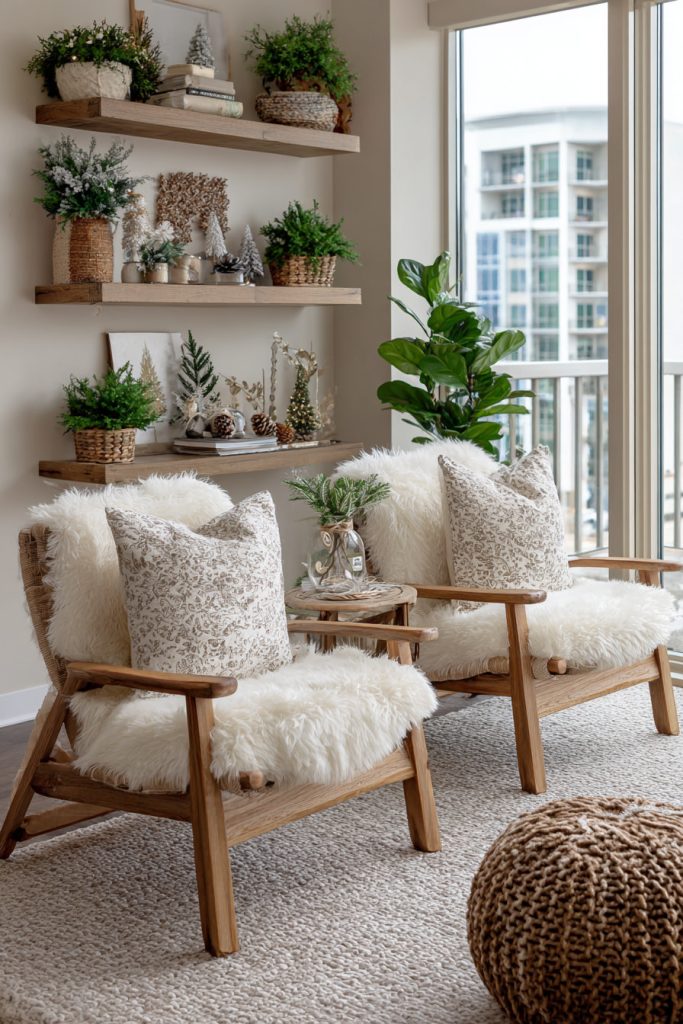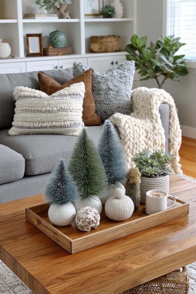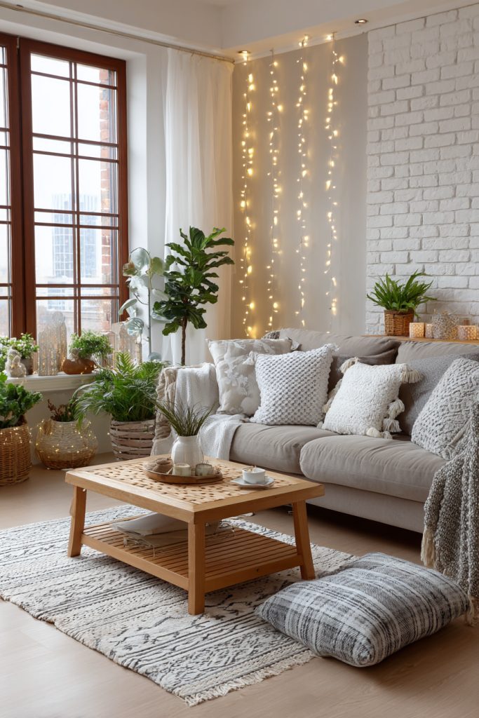 Decorate them with small ornaments or lights to match your room’s style. This adds color and warmth without cluttering your living area.