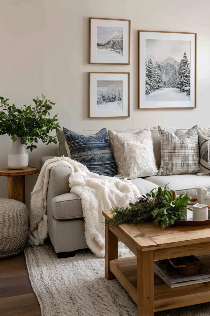 Look for simple designs or soft colors to keep your space calm and inviting. You can even swap out art easily for a quick winter update.