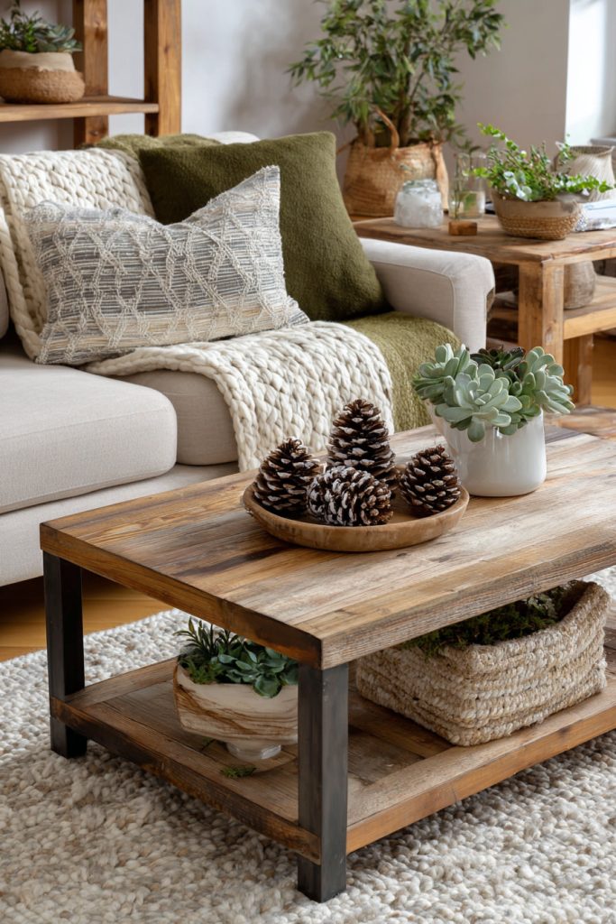 You can use pine cones to bring a cozy, natural touch to your small living room. Place them in bowls or jars on shelves and tables for simple, rustic charm.