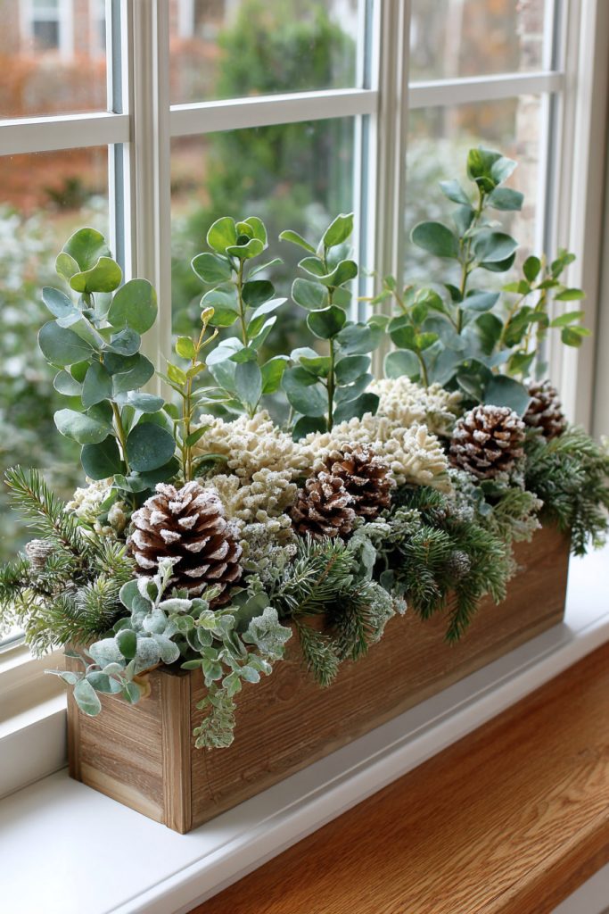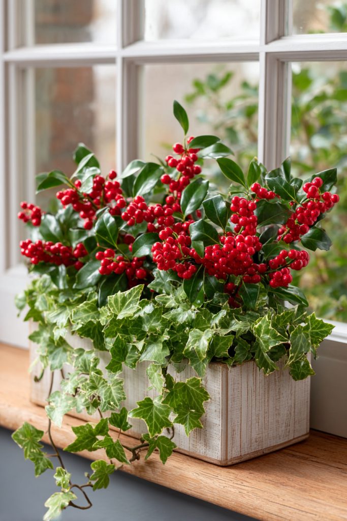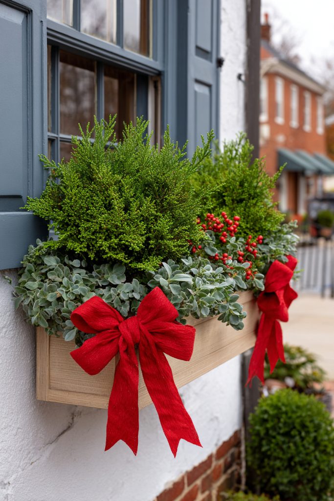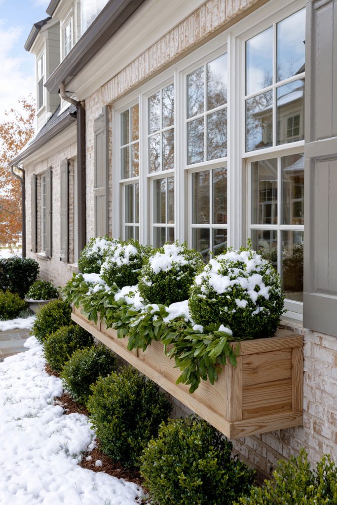 This combo is easy to put together and adds a bit of winter cheer without being too busy. It keeps your window box looking clean and stylish all season.